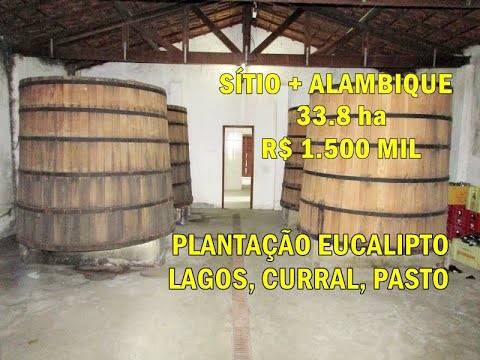 Sítio de 7 alq (33.88 ha = 338.800 m²) com fábrica de cachaça, composta por alambique, moenda, caldeira, decantador, reservatório, engarrafador, caixa d' água, etc. Equipamento com valor aproximado de R$ 370.000,00; casa sede com linda vista, precisando de uma reforma; casa de caseiro; pastagem, 2 lagos, curral para gado de corte/manejo; plantação de eucalipto; frutíferas.