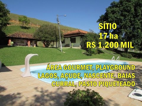 Sítio de 3.51 alq (17 ha = 170.000 m²) com ótima casa sede avarandada de 4 quartos, sendo 2 suítes, sala ampla, cozinha, banheiro social; garagem coberta; área de lazer com piscina, churrasqueira com forno e fogão à lenha; 2 lagos, 1 açude, nascente; curral, baias; quarto de ferramentas, galinheiro, pocilga; pastagem piqueteada.