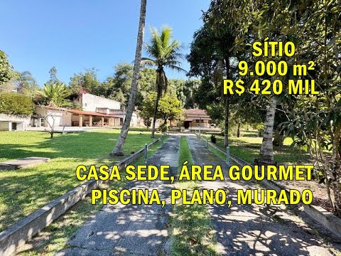 Sítio de 9.000 m² com casa sede de laje com 3 quartos, sendo 1 suíte, sala, copa, banheiro social, cozinha, área gourmet com churrasqueira + forno e fogão a lenha, área de serviço; suíte externa para hóspedes em fase de acabamento; área de lazer com piscina, área gourmet com churrasqueira, capela; murado, gramado, jardinado, frutíferas.